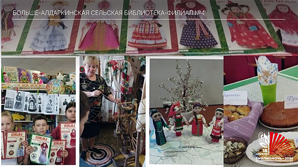 В Больше‑Алдаркинской сельской библиотеке‑филиале № 4 этнокалейдоскоп «Народов много – страна одна» подарил гостям атмосферу тёплых встреч и открытий. Маленькие и взрослые читатели отправились в волшебное путешествие по страницам книг, познакомились со сказками народов России и услышали удивительные истории, передававшиеся из поколения в поколение. Интерактивная лекция «Вкус России» позволила совершить путешествие по стране: участники узнали о национальных блюдах, их истории и секретах приготовления, а также поделились семейными рецептами.