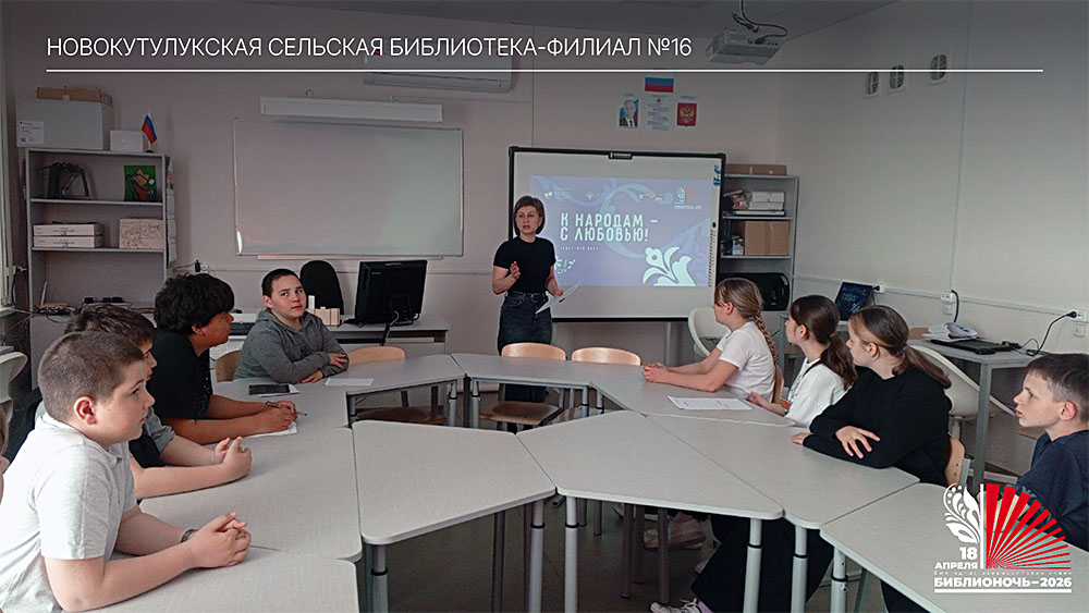 Новокутулукская сельская библиотека‑филиал № 16 вместе с учащимися школы посёлка Новый Кутулук провела интеллектуальную игру‑квиз «С любовью к народам». Вопросы были посвящены обычаям, традициям и культуре разных народов нашей Родины. Ребята с удовольствием погрузились в игру, проявили смекалку и интерес к традициям друг друга, а в упорной борьбе, как и положено, победила дружба.