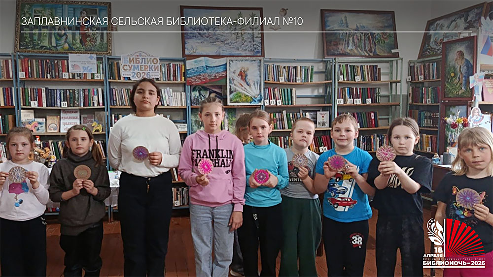 Заплавнинская сельская библиотека‑филиал № 10 18 апреля превратилась в дружную гостиную, где прошёл «Радужный вечер: Хоровод народов России». Дети отправились в увлекательное путешествие по семи интерактивным зонам, каждая из которых была посвящена культуре одного из народов нашей страны. Они отбивали ритм деревянными ложками в «Русском дворике», мастерили тюбетейку и куклу‑оберег без лица по бурятской традиции, собирали пазлы и вспоминали народы Севера, танцевали лезгинку и играли в народные игры. Книжная выставка «Народы дружат книгами» представила сказки, легенды и сказания народов России – от русских былин до якутского олонхо, а фотозона «Единство народа – сила России» стала центром притяжения для памятных снимков. Вечер завершился большим чаепитием со сладкими блюдами народов России и общим хороводом Дружбы под песню «Вместе весело шагать».